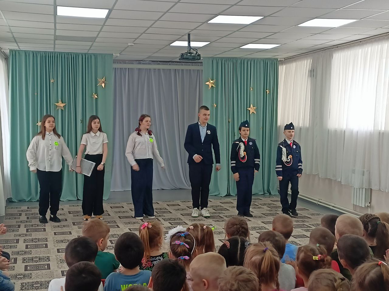 Перед малышами выступили ЮИДовцы и ученики первой школы, которые рассказали о правилах дорожного движения и безопасного нахождения в автомобиле, а также о дорожных ситуациях, которые могут возникнуть во дворе – ведь там тоже ездят машины. Особый акцент агитбригада ЮИД сделала на осторожности при выходе из-за припаркованного транспорта. А сотрудник Госавтоинспекции рассказала детям, какие бывают светововзращающие элементы, об их волшебных свойствах и назначении.