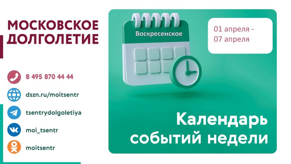 Расписанием мероприятий на неделю поделились специалисты Центра московского долголетия в Воскресенском с 01-07 апреля